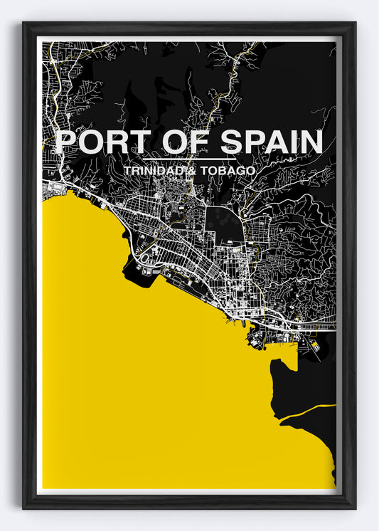 Trinidad & Tobago - Port of Spain Map Art Wall Print